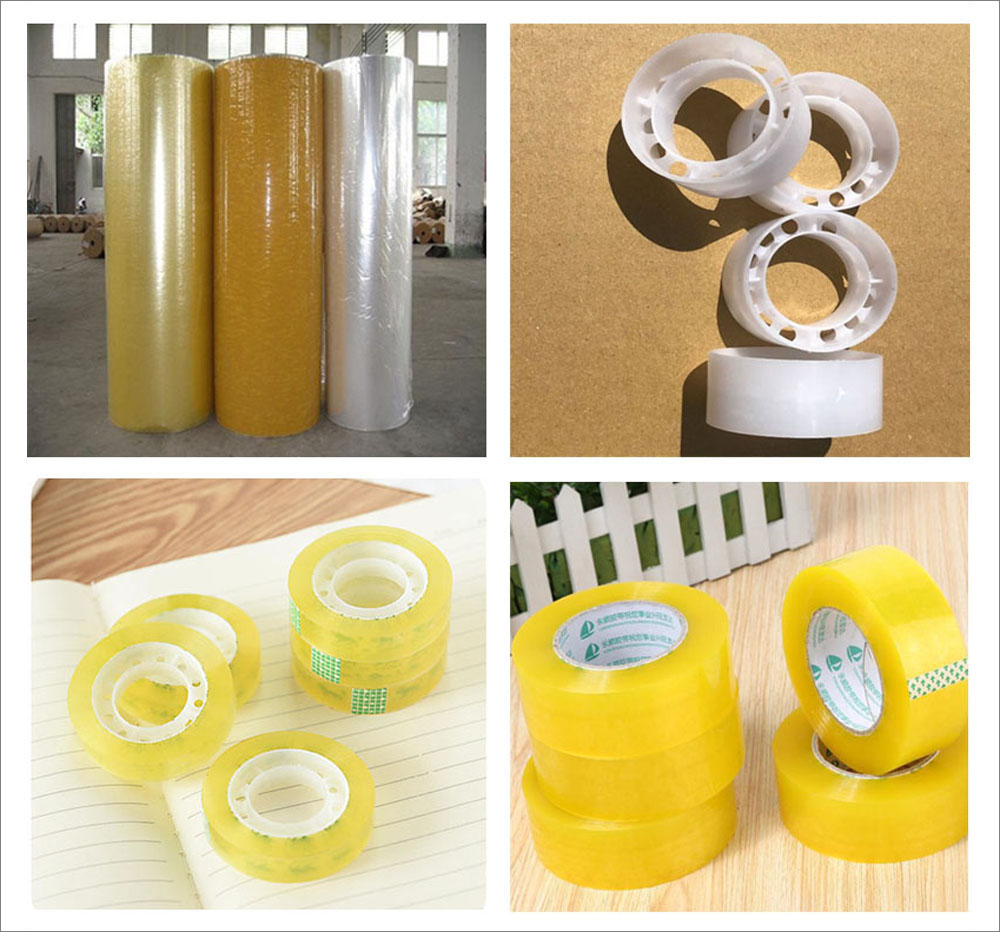 適用范圍:適用于各類透明封箱膠帶、印字印刷封箱膠帶半成品母卷的分條加工